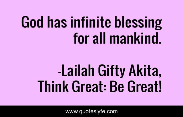 "Lailah Gifty Akita, Think Great: Be Great! Quotes." Quoteslyfe.com, 2025. Fri. 05 Dec. 2025. <https://www.quoteslyfe.com/quote/God-has-infinite-blessing-for-all-mankind-85230>.