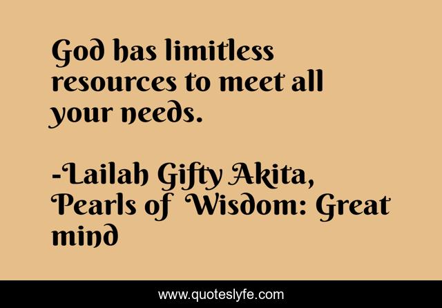 "Lailah Gifty Akita, Pearls of Wisdom: Great mind Quotes." Quoteslyfe.com, 2025. Sun. 07 Dec. 2025. <https://www.quoteslyfe.com/quote/God-has-limitless-resources-to-meet-all-180267>.