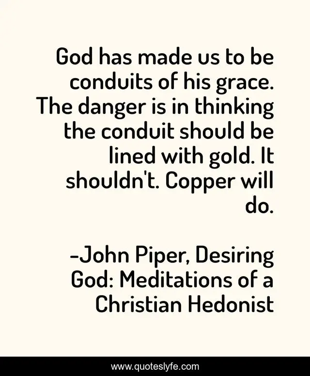 "John Piper, Desiring God: Meditations of a Christian Hedonist Quotes." Quoteslyfe.com, 2025. Sat. 06 Dec. 2025. <https://www.quoteslyfe.com/quote/God-has-made-us-to-be-conduits-153517>.