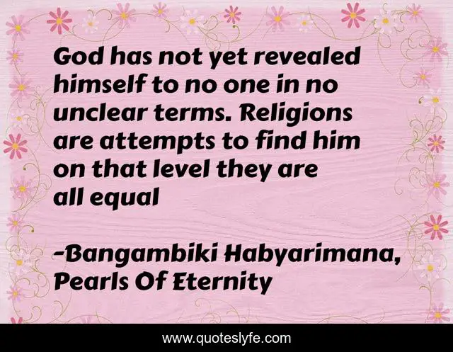 "Bangambiki Habyarimana, Pearls Of Eternity Quotes." Quoteslyfe.com, 2025. Sun. 07 Dec. 2025. <https://www.quoteslyfe.com/quote/God-has-not-yet-revealed-himself-to-44563>.