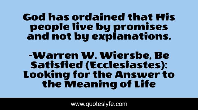 This page presents the quote "God has ordained that His people live by promises and not by explanations.". Author of this quote is Warren W. Wiersbe, Be Satisfied (Ecclesiastes): Looking for the Answer to the Meaning of Life. This quote is about faith, trust,.