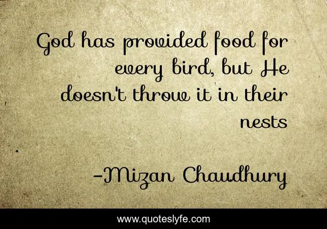 "Mizan Chaudhury Quotes." Quoteslyfe.com, 2025. Fri. 05 Dec. 2025. <https://www.quoteslyfe.com/quote/God-has-provided-food-for-every-bird-90179>.