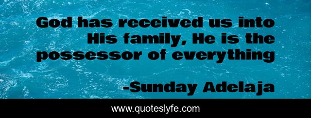 This page presents the quote "God has received us into His family, He is the possessor of everything". Author of this quote is Sunday Adelaja. This quote is about prosperity, christ, family, received, money, riches, possible, possessor, everything,.