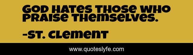This page presents the quote "God hates those who praise themselves.". Author of this quote is St. Clement. This quote is about self, praise,.