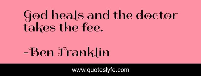 "Ben Franklin Quotes." Quoteslyfe.com, 2025. Mon. 08 Dec. 2025. <https://www.quoteslyfe.com/quote/God-heals-and-the-doctor-takes-the-267765>.