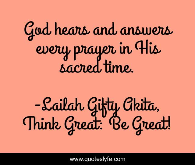 "Lailah Gifty Akita, Think Great: Be Great! Quotes." Quoteslyfe.com, 2025. Sat. 06 Dec. 2025. <https://www.quoteslyfe.com/quote/God-hears-and-answers-every-prayer-in-114926>.