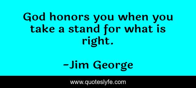 This page presents the quote "God honors you when you take a stand for what is right.". Author of this quote is Jim George. This quote is about faith, bible, christian, author, god, wednesday, wrong, right, stand,.