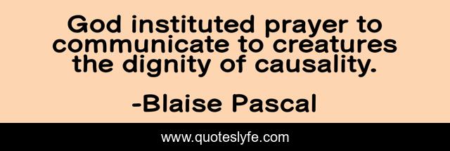 This page presents the quote "God instituted prayer to communicate to creatures the dignity of causality.". Author of this quote is Blaise Pascal. .