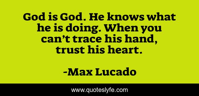 This page presents the quote "God is God. He knows what he is doing. When you can’t trace his hand, trust his heart.". Author of this quote is Max Lucado. This quote is about enthusiasm, christian, inspirational,.