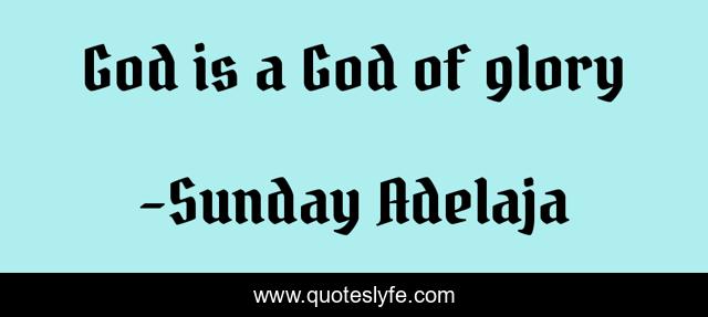 This page presents the quote "God is a God of glory". Author of this quote is Sunday Adelaja. This quote is about love, people, money, principles, employment, worship, celebrating-people, destiny, service,.
