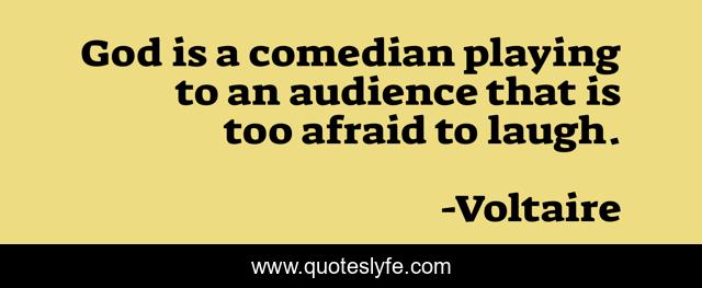 This page presents the quote "God is a comedian playing to an audience that is too afraid to laugh.". Author of this quote is Voltaire. This quote is about god, voltaire,.