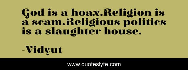 This page presents the quote "God is a hoax.Religion is a scam.Religious politics is a slaughter house.". Author of this quote is Vidyut. This quote is about atheism, god, violence,.