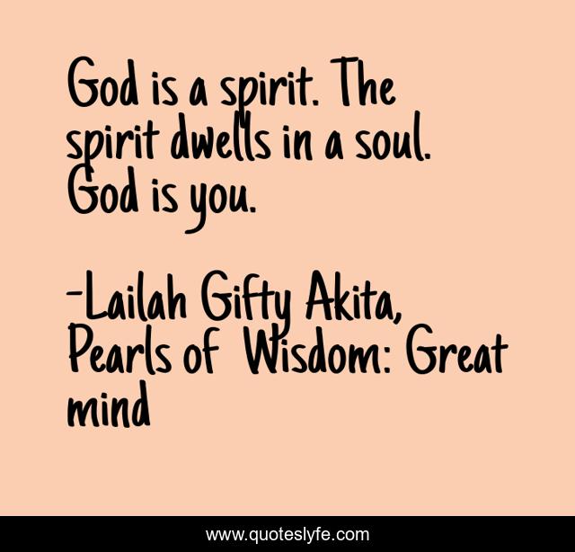 "Lailah Gifty Akita, Pearls of Wisdom: Great mind Quotes." Quoteslyfe.com, 2025. Mon. 08 Dec. 2025. <https://www.quoteslyfe.com/quote/God-is-a-spirit-The-spirit-dwells-63730>.