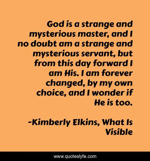 "Kimberly Elkins, What Is Visible Quotes." Quoteslyfe.com, 2025. Fri. 05 Dec. 2025. <https://www.quoteslyfe.com/quote/God-is-a-strange-and-mysterious-master-219716>.