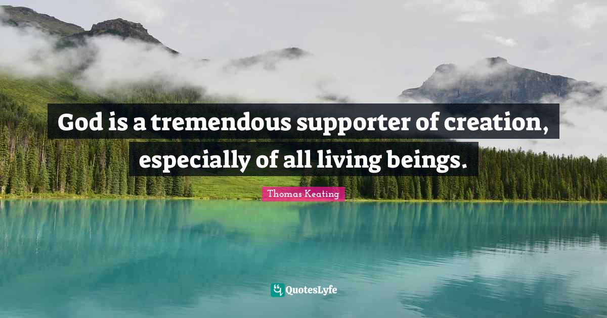 This page presents the quote "God is a tremendous supporter of creation, especially of all living beings.". Author of this quote is Thomas Keating. This quote is about creation, god, supporter,.