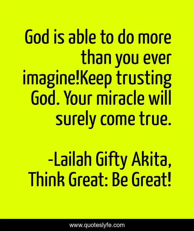 "Lailah Gifty Akita, Think Great: Be Great! Quotes." Quoteslyfe.com, 2025. Fri. 05 Dec. 2025. <https://www.quoteslyfe.com/quote/God-is-able-to-do-more-than-169419>.