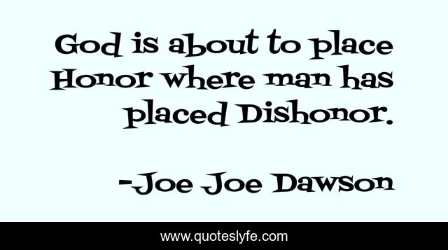"Joe Joe Dawson Quotes." Quoteslyfe.com, 2025. Mon. 08 Dec. 2025. <https://www.quoteslyfe.com/quote/God-is-about-to-place-Honor-where-225018>.
