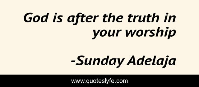 This page presents the quote "God is after the truth in your worship". Author of this quote is Sunday Adelaja. This quote is about love, people, money, principles, employment, worship, destiny, service, god,.