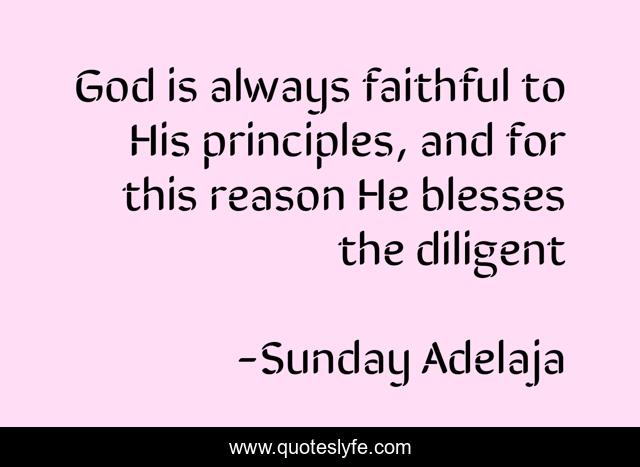 This page presents the quote "God is always faithful to His principles, and for this reason He blesses the diligent". Author of this quote is Sunday Adelaja. This quote is about god, blessing, faithfulness, diligence,.