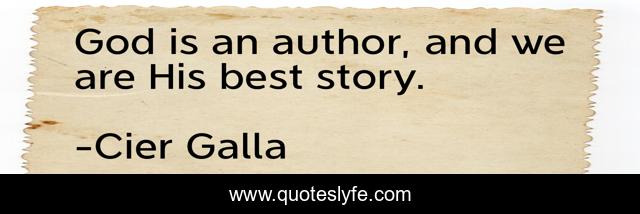 This page presents the quote "God is an author, and we are His best story.". Author of this quote is Cier Galla. This quote is about lessons, living, life, life-experience, storytelling, author, god, motivation, living-life,.