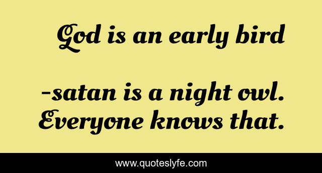 "satan is a night owl. Everyone knows that. Quotes." Quoteslyfe.com, 2025. Fri. 05 Dec. 2025. <https://www.quoteslyfe.com/quote/God-is-an-early-bird-257371>.