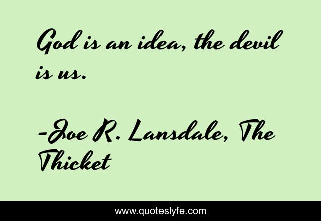 "Joe R. Lansdale, The Thicket Quotes." Quoteslyfe.com, 2025. Sat. 06 Dec. 2025. <https://www.quoteslyfe.com/quote/God-is-an-idea-the-devil-is-175302>.
