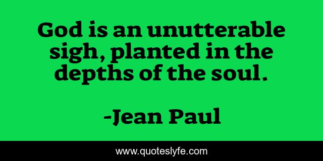 This page presents the quote "God is an unutterable sigh, planted in the depths of the soul.". Author of this quote is Jean Paul. This quote is about sigh, planted, soul,.