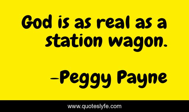 This page presents the quote "God is as real as a station wagon.". Author of this quote is Peggy Payne. This quote is about faith, god, religion, inspirational, enthusiasm, mysticism, inspiration,.