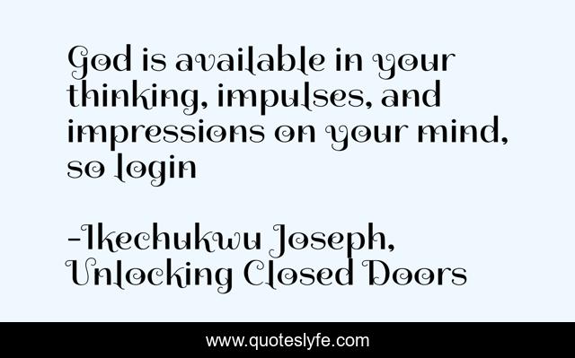 "Ikechukwu Joseph, Unlocking Closed Doors Quotes." Quoteslyfe.com, 2025. Fri. 05 Dec. 2025. <https://www.quoteslyfe.com/quote/God-is-available-in-your-thinking-impulses-224449>.