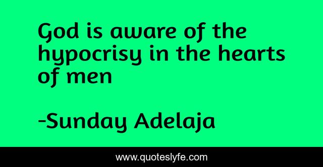 This page presents the quote "God is aware of the hypocrisy in the hearts of men". Author of this quote is Sunday Adelaja. This quote is about love, people, money, principles, employment, worship, destiny, service, god,.