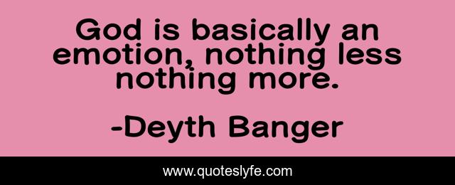 This page presents the quote "God is basically an emotion, nothing less nothing more.". Author of this quote is Deyth Banger. This quote is about emotion, god, nothing, less,.