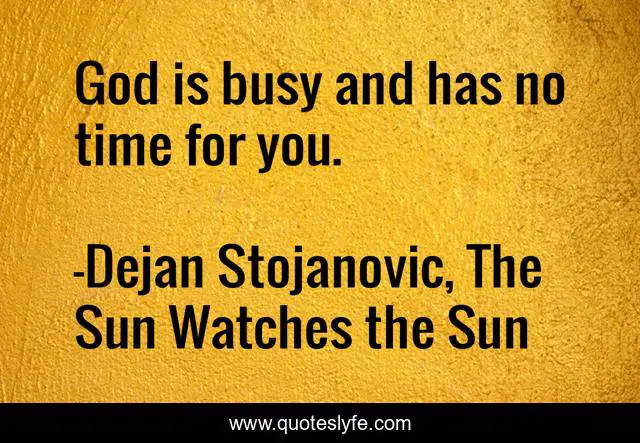 "Dejan Stojanovic, The Sun Watches the Sun Quotes." Quoteslyfe.com, 2025. Sat. 06 Dec. 2025. <https://www.quoteslyfe.com/quote/God-is-busy-and-has-no-time-11578>.