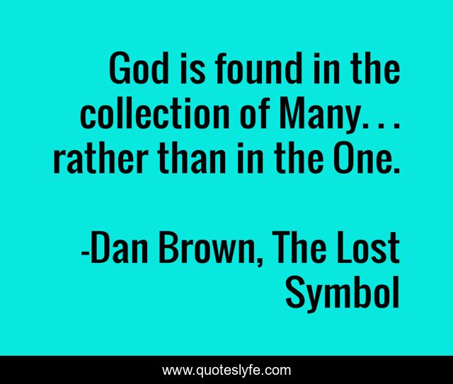 This page presents the quote "God is found in the collection of Many. . . rather than in the One.". Author of this quote is Dan Brown, The Lost Symbol. .