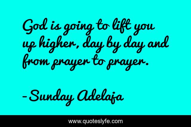 This page presents the quote "God is going to lift you up higher, day by day and from prayer to prayer.". Author of this quote is Sunday Adelaja. .