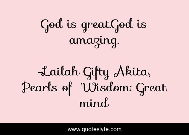 "Lailah Gifty Akita, Pearls of Wisdom: Great mind Quotes." Quoteslyfe.com, 2025. Sat. 06 Dec. 2025. <https://www.quoteslyfe.com/quote/God-is-great-God-is-amazing-198013>.