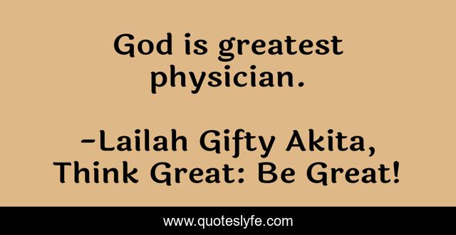 "Lailah Gifty Akita, Think Great: Be Great! Quotes." Quoteslyfe.com, 2025. Sat. 06 Dec. 2025. <https://www.quoteslyfe.com/quote/God-is-greatest-physician-78358>.