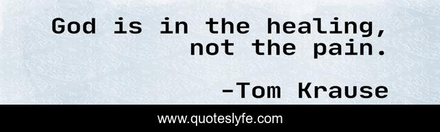 This page presents the quote "God is in the healing, not the pain.". Author of this quote is Tom Krause. This quote is about god, healing, happiness,.