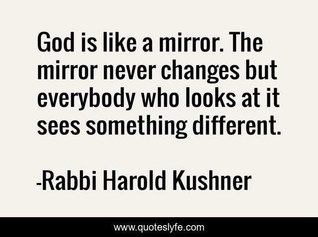 This page presents the quote "God is like a mirror. The mirror never changes but everybody who looks at it sees something different.". Author of this quote is Rabbi Harold Kushner. .