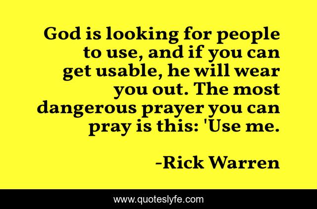 This page presents the quote "God is looking for people to use, and if you can get usable, he will wear you out. The most dangerous prayer you can pray is this: 'Use me.". Author of this quote is Rick Warren. This quote is about god, faith, service, prayer,.