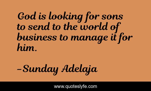 This page presents the quote "God is looking for sons to send to the world of business to manage it for him.". Author of this quote is Sunday Adelaja. This quote is about looking, sons, business, manage,.
