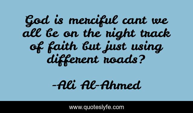 This page presents the quote "God is merciful cant we all be on the right track of faith but just using different roads?". Author of this quote is Ali Al-Ahmed. This quote is about faith, sectarianism, god, religion,.