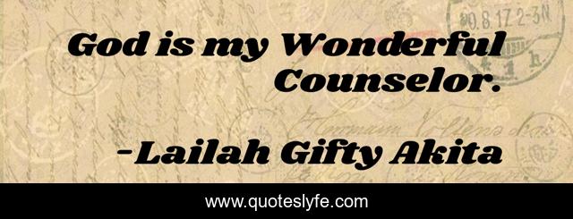 This page presents the quote "God is my Wonderful Counselor.". Author of this quote is Lailah Gifty Akita. This quote is about lailah-gifty-akita-affirmations, god, wonderful, inspirational, enthusiasm, counselor,.