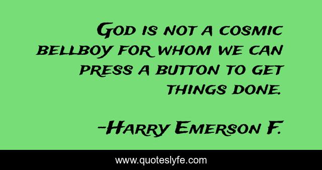 This page presents the quote "God is not a cosmic bellboy for whom we can press a button to get things done.". Author of this quote is Harry Emerson F.. .