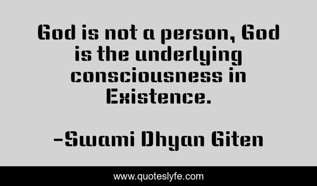 This page presents the quote "God is not a person, God is the underlying consciousness in Existence.". Author of this quote is Swami Dhyan Giten. This quote is about life, consciousness, god, truth, existence, meditation, awareness,.