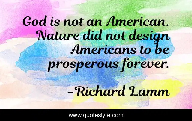 This page presents the quote "God is not an American. Nature did not design Americans to be prosperous forever.". Author of this quote is Richard Lamm. This quote is about god, american, nature,.