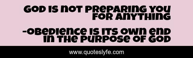 "obedience is its own end in the purpose of God Quotes." Quoteslyfe.com, 2025. Fri. 05 Dec. 2025. <https://www.quoteslyfe.com/quote/God-is-not-preparing-you-for-anything-206232>.