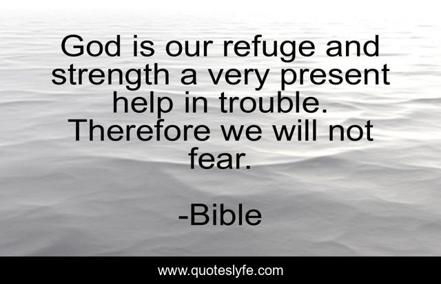 This page presents the quote "God is our refuge and strength a very present help in trouble. Therefore we will not fear.". Author of this quote is Bible. This quote is about success, happiness,.