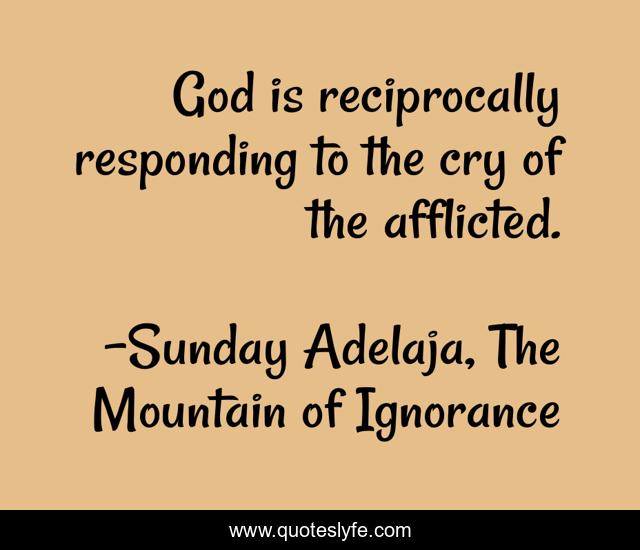 This page presents the quote "God is reciprocally responding to the cry of the afflicted.". Author of this quote is Sunday Adelaja, The Mountain of Ignorance. This quote is about mountain, life, darkness, power, danger, light, cry, people, ignorance,.