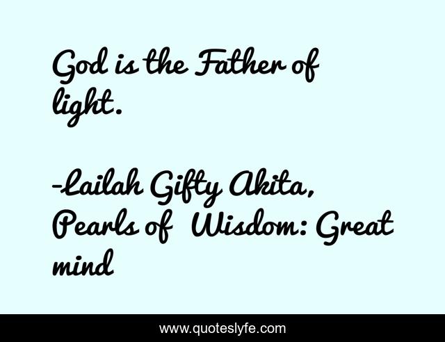 "Lailah Gifty Akita, Pearls of Wisdom: Great mind Quotes." Quoteslyfe.com, 2025. Mon. 08 Dec. 2025. <https://www.quoteslyfe.com/quote/God-is-the-Father-of-light-85580>.