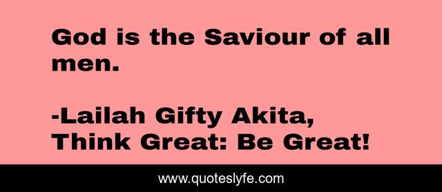 "Lailah Gifty Akita, Think Great: Be Great! Quotes." Quoteslyfe.com, 2025. Sun. 07 Dec. 2025. <https://www.quoteslyfe.com/quote/God-is-the-Saviour-of-all-men-124100>.